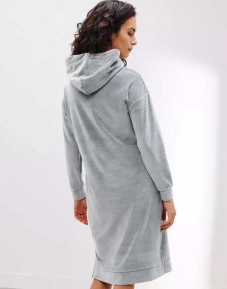 A cosy velour hooded nightdress, designed for warmth and relaxed nights in.
