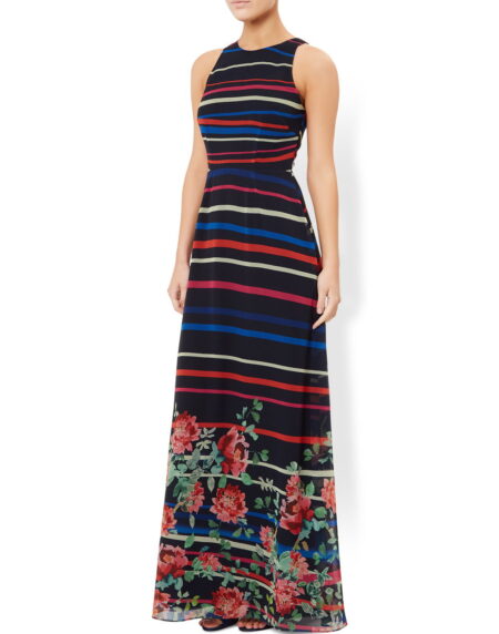 A botanical-inspired maxi dress with a delicate, nature-themed design.