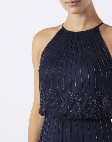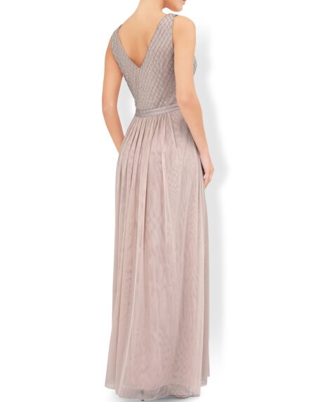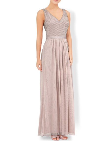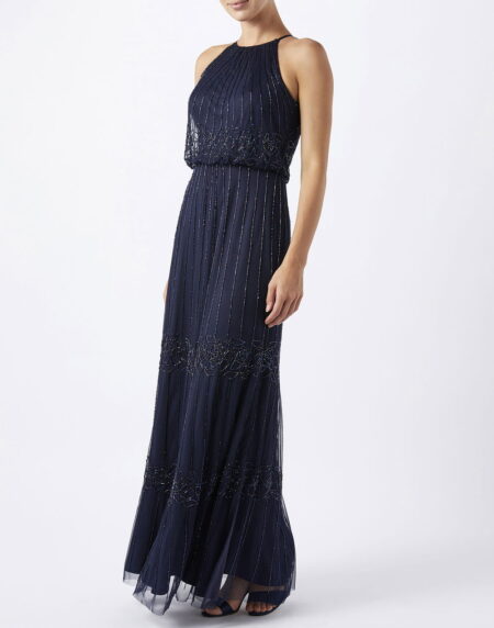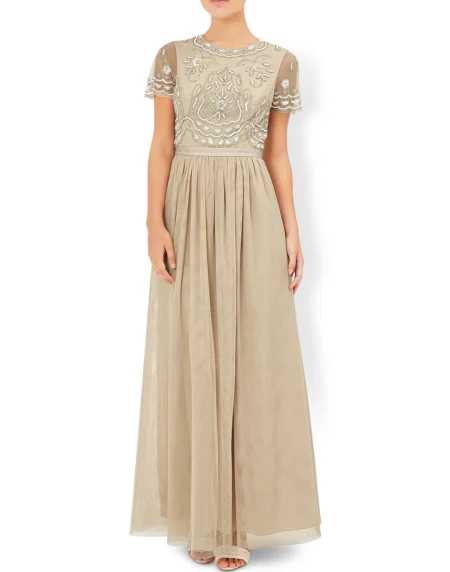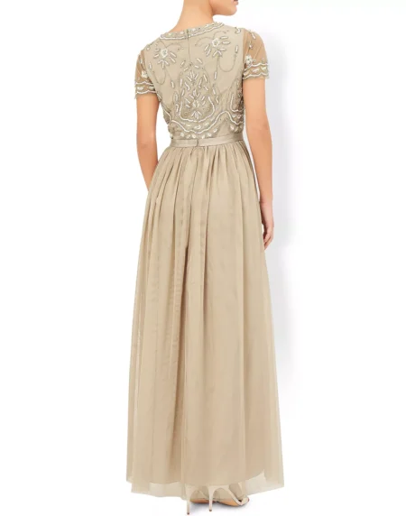 Elegant maxi dress with a flowing silhouette and timeless detailing, perfect for special occasions.