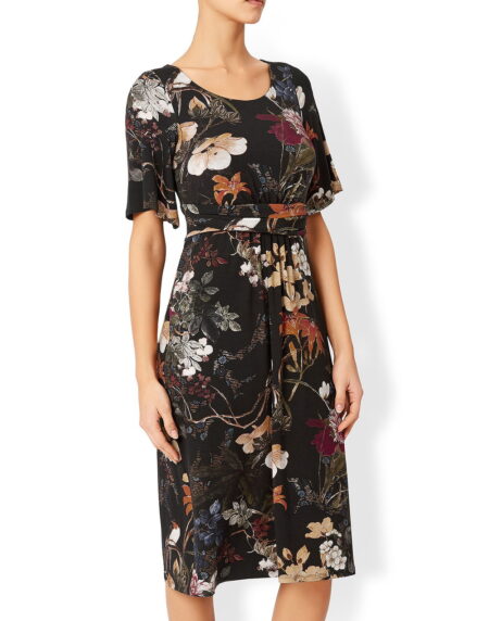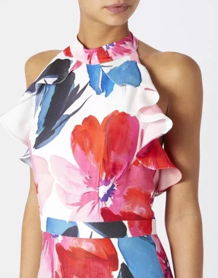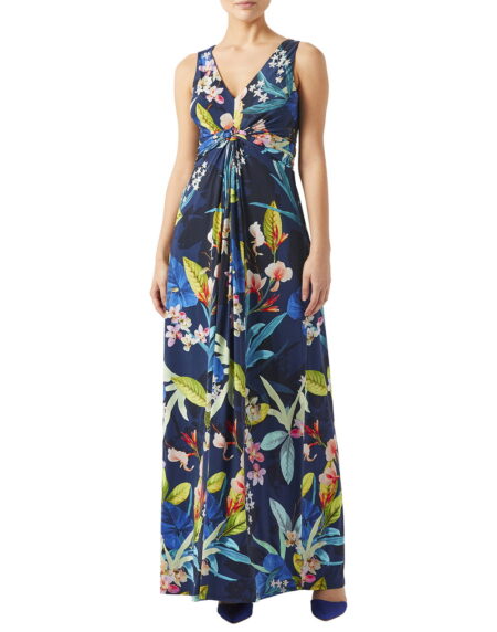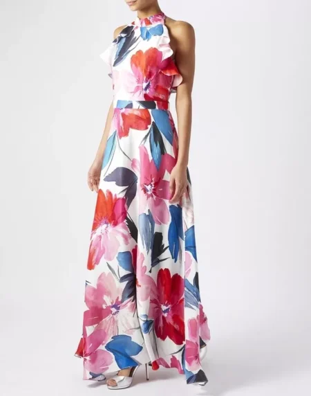 Floral print maxi dress with a flowing design, perfect for summer weddings and garden parties.