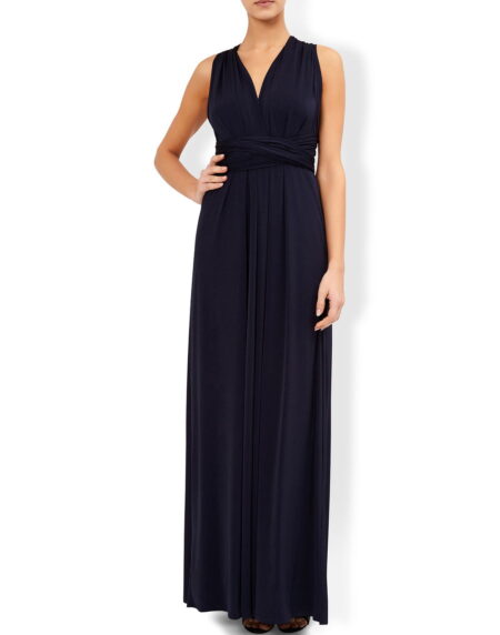 A timeless maxi dress with a sleek silhouette and flowing fabric.