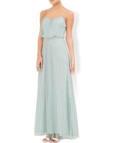 A shimmering cami-style maxi dress designed to stand out at evening events.