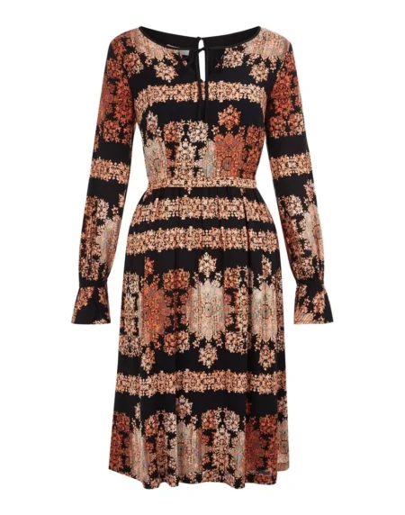 Sophisticated jacquard dress with a Persian-inspired design, perfect for weddings and formal occasions.