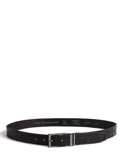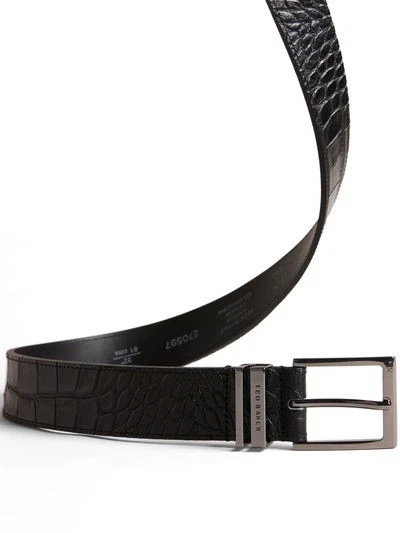 A classic leather belt with croc-effect texture, perfect for polished styling.