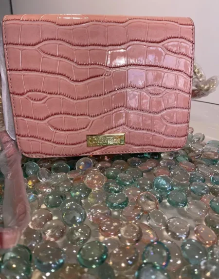 A stylish croc-effect leather crossbody bag with a structured design and modern edge.
