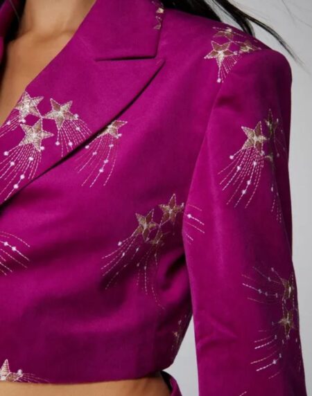 Elevate your style with the Premium Embroidered Velvet Cropped Blazer. Luxurious velvet with intricate embroidery. Stand out in style!