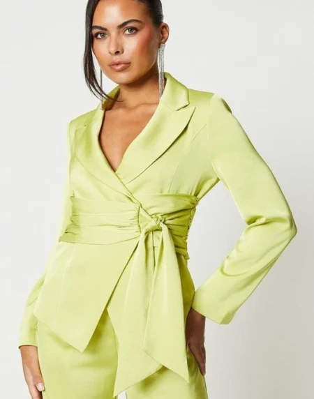 (0)Velvet Wrap Waist Suit Blazer