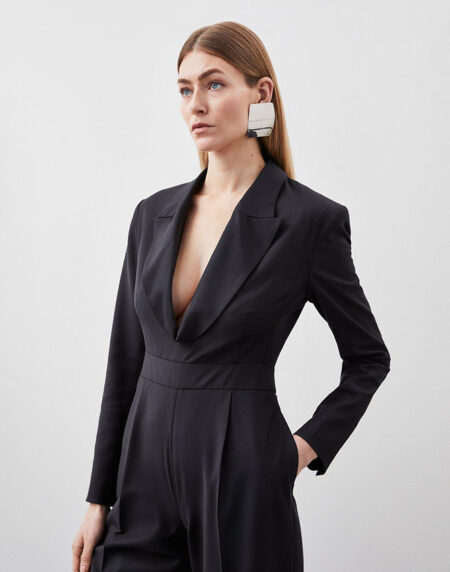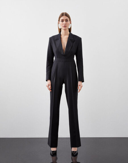 Wool Blend Curved Neckline Tailored Blazer Jumpsuit