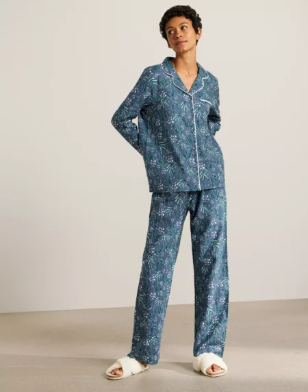 A soft floral pyjama set with a classic shirt-style design.