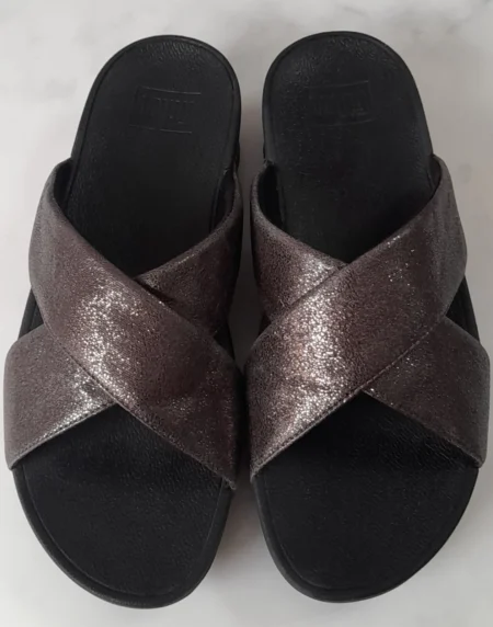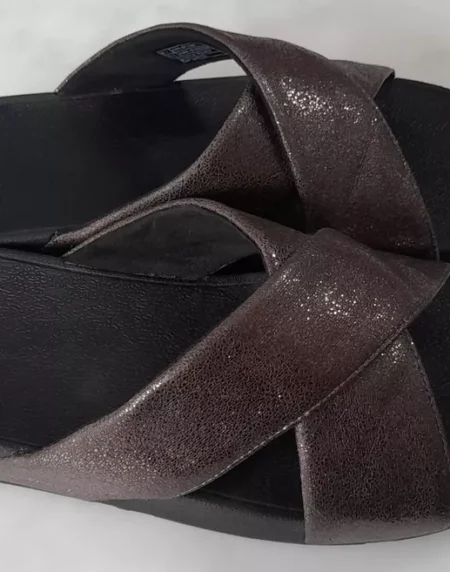Stylish sandals featuring a molten metal finish for a sleek, modern look with all-day comfort.