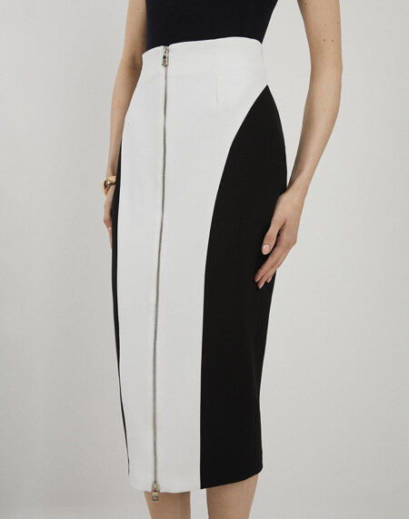 (0)Compact Stretch Colour Block Panelled Tailored Midaxi Skirt