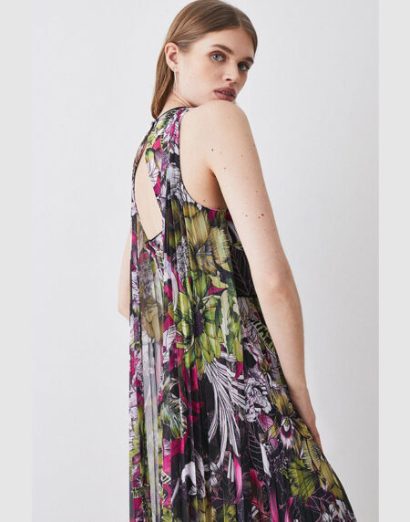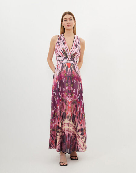 Effortlessly chic, the Abstract Ombre Pleated Sleeveless Midaxi Dress combines elegance and modern style with its striking ombre tones and graceful pleats.