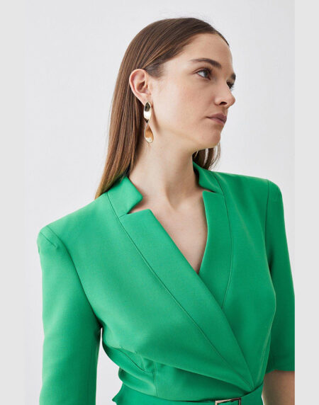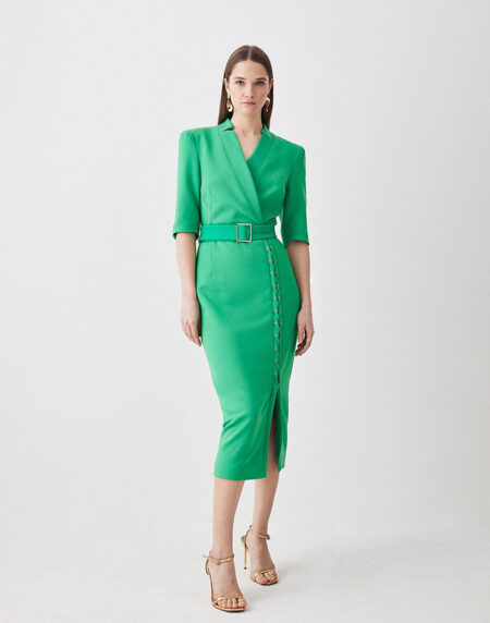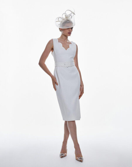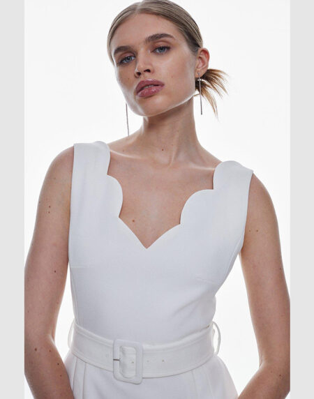 The Clean Tailored Scallop Detail Midi Dress blends sharp tailoring with delicate scalloped edges for a refined feminine look ideal for elegant occasions.