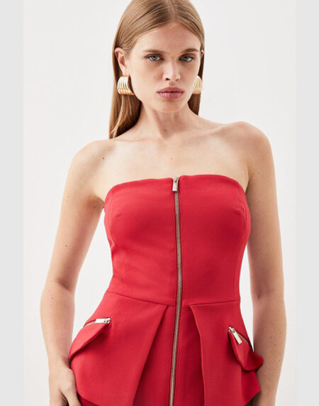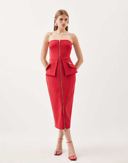 (0)Compact Stretch Tailored Bandeau Pencil Midi Dress