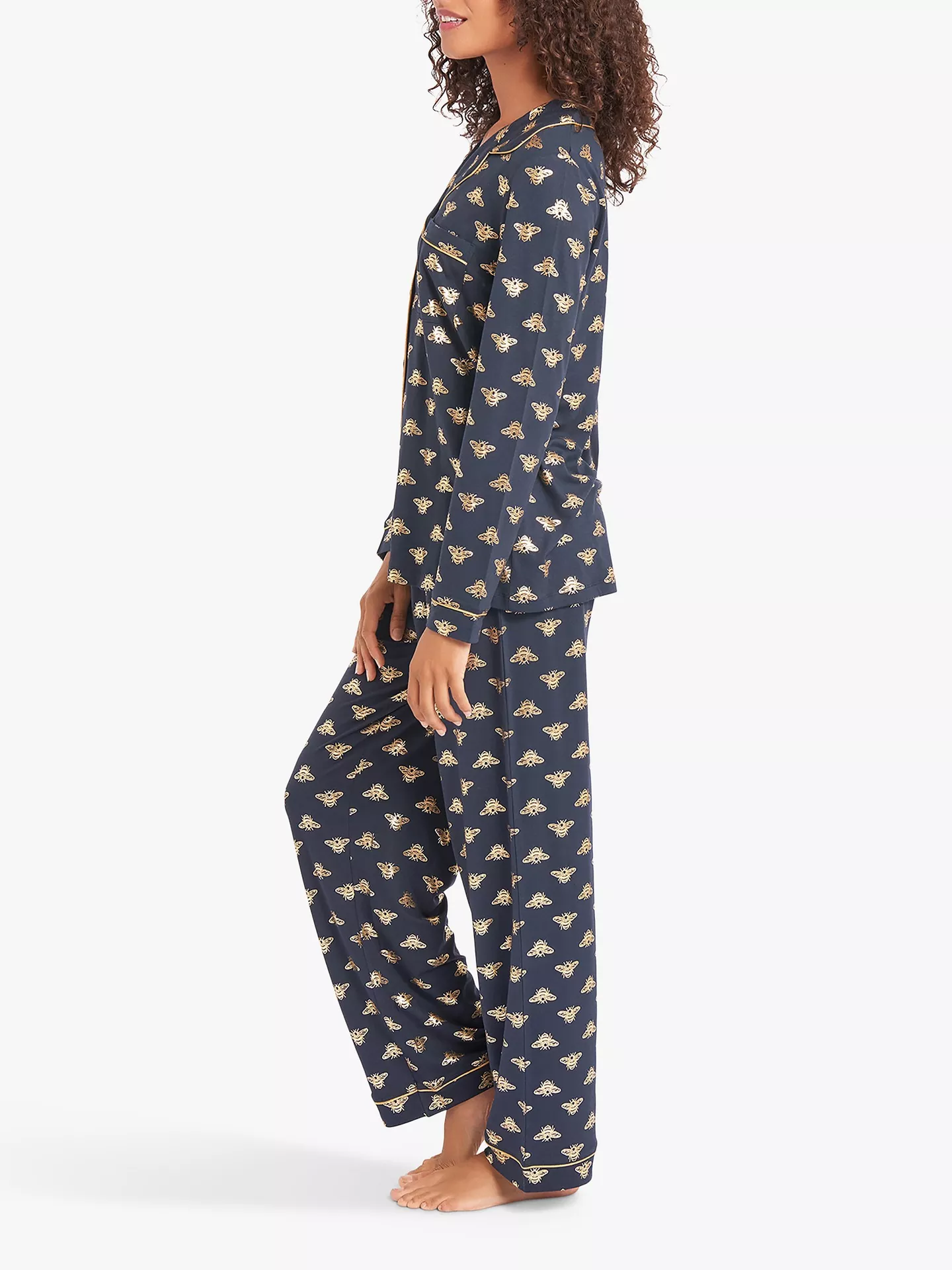 The Bee Print Pyjama Set brings a fun touch to classic sleepwear. Crafted from soft, breathable fabric, it keeps you comfortable throughout the night. The relaxed fit allows easy movement, while the charming print adds personality to your bedtime routine. Perfect for sleeping or unwinding at home, this set blends comfort with cheerful style.