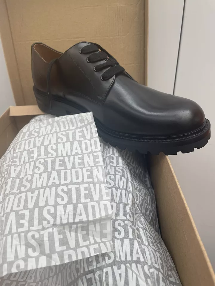 The Black Farringdon Derby Shoes by Steve Madden are a smart choice for formal or workwear looks. With a clean lace-up design and smooth finish, they offer all-day comfort and timeless style for any occasion.