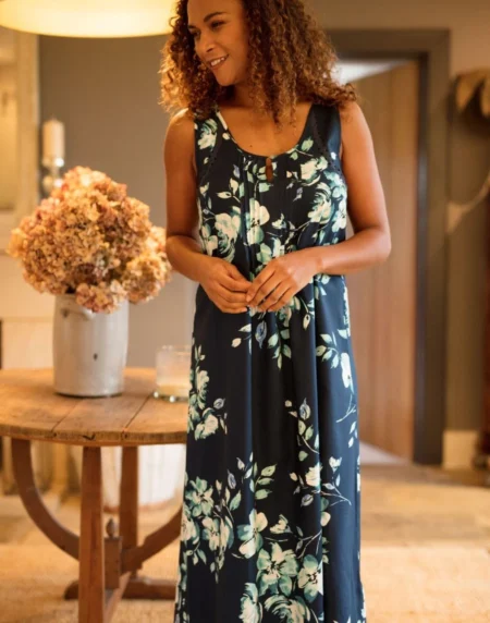 The Blue Heron Satin Pyjama Set features a luxurious satin fabric with an elegant blue heron print. It includes a button-up shirt with a notched collar and matching elastic-waist trousers for a stylish and comfortable sleepwear set.