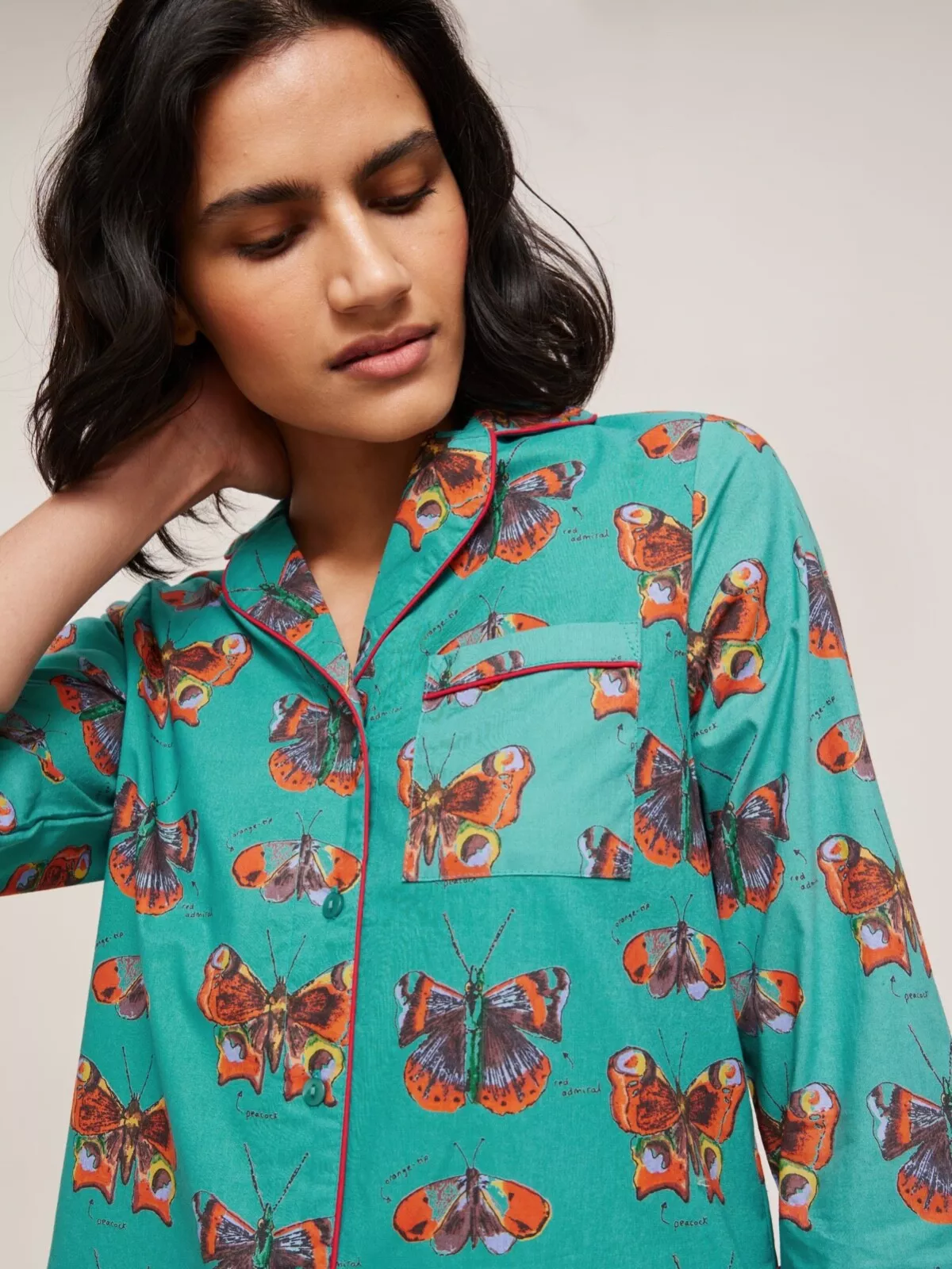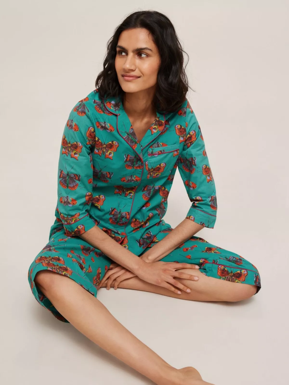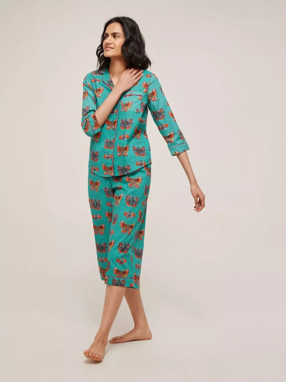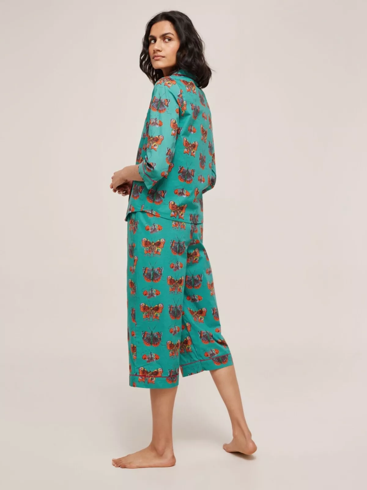 Delightful capri pyjama set featuring a whimsical butterfly design, perfect for warm nights.