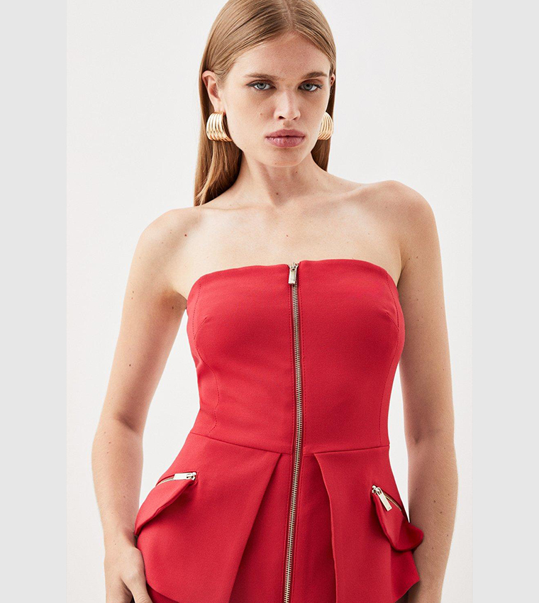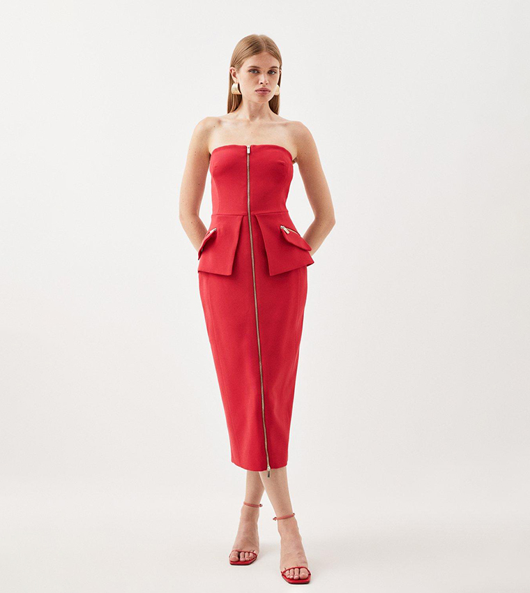 This tailored midi dress features functional zip pockets and a flattering fit, crafted from high-quality stretch fabric. Ideal for both professional and casual settings, it combines style with practicality.