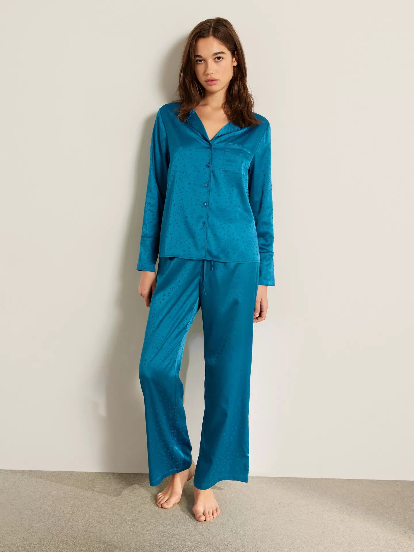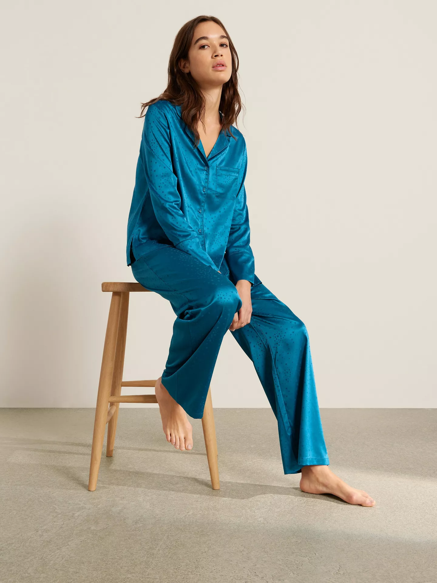 The Cosmo Satin Pyjama Set feels smooth and soft against the skin. Made from lightweight satin, it moves easily with the body. As a result, it stays comfortable without feeling heavy.