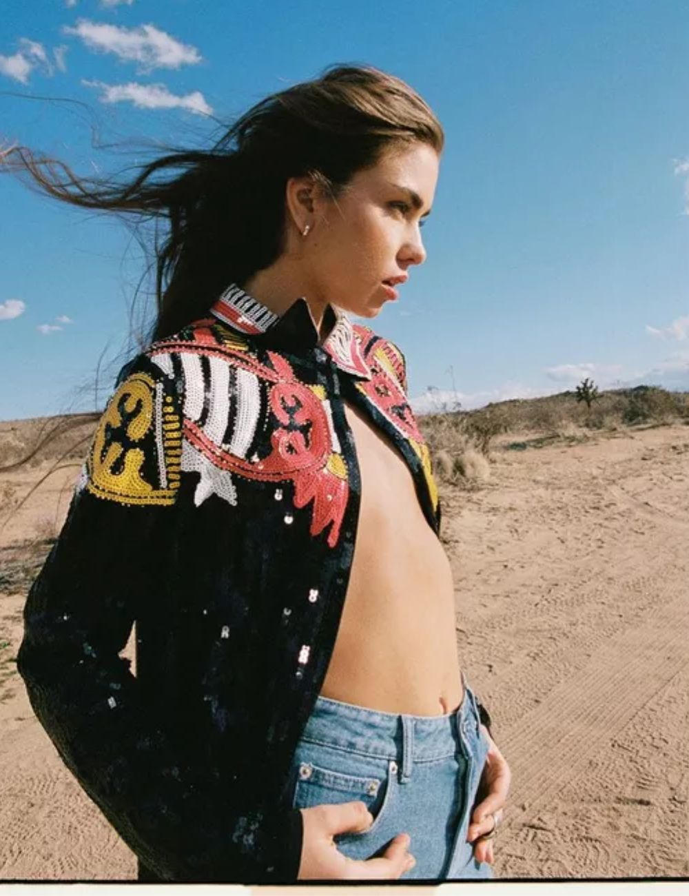 Channel your inner diva with the Country Star Sequin Embellished Shirt. Adorned with star-shaped sequin embellishments, this shirt adds a touch of glam to any outfit. Pair it with denim for a country-chic vibe or a leather skirt for a rockstar look.