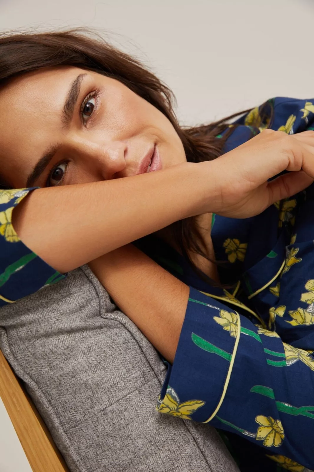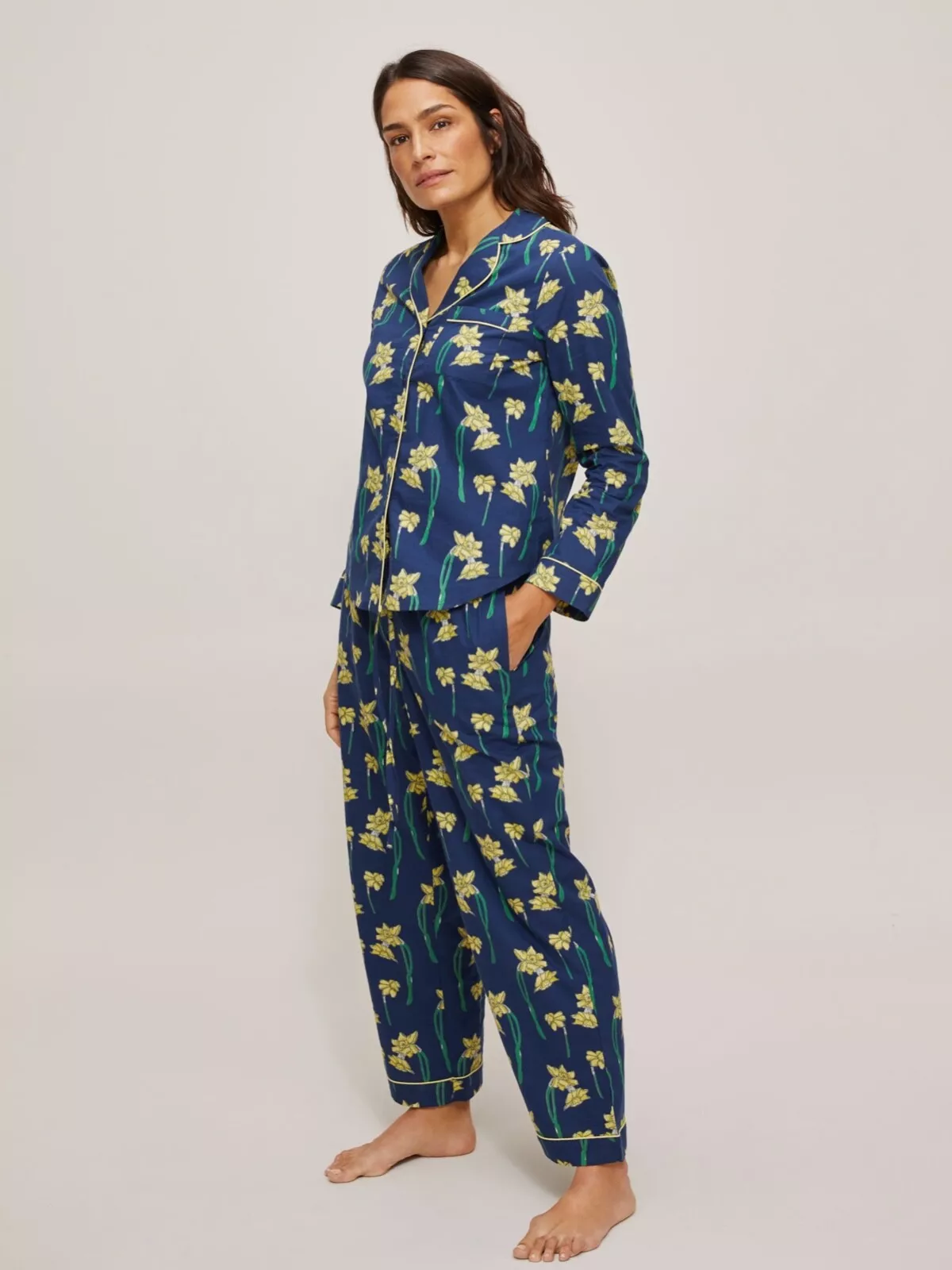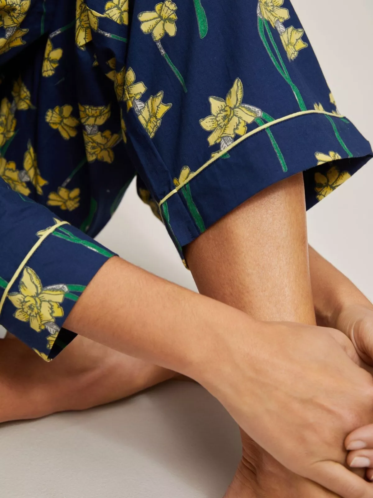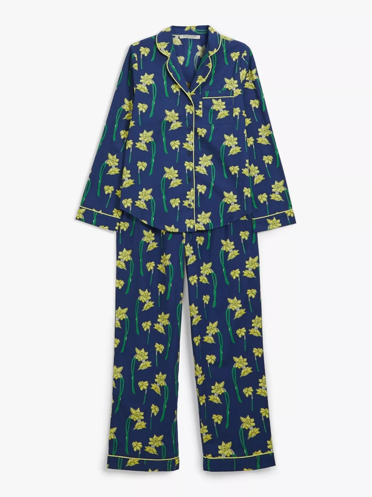 Cheerful pyjama set adorned with a lovely daffodil floral print for a fresh bedtime look.