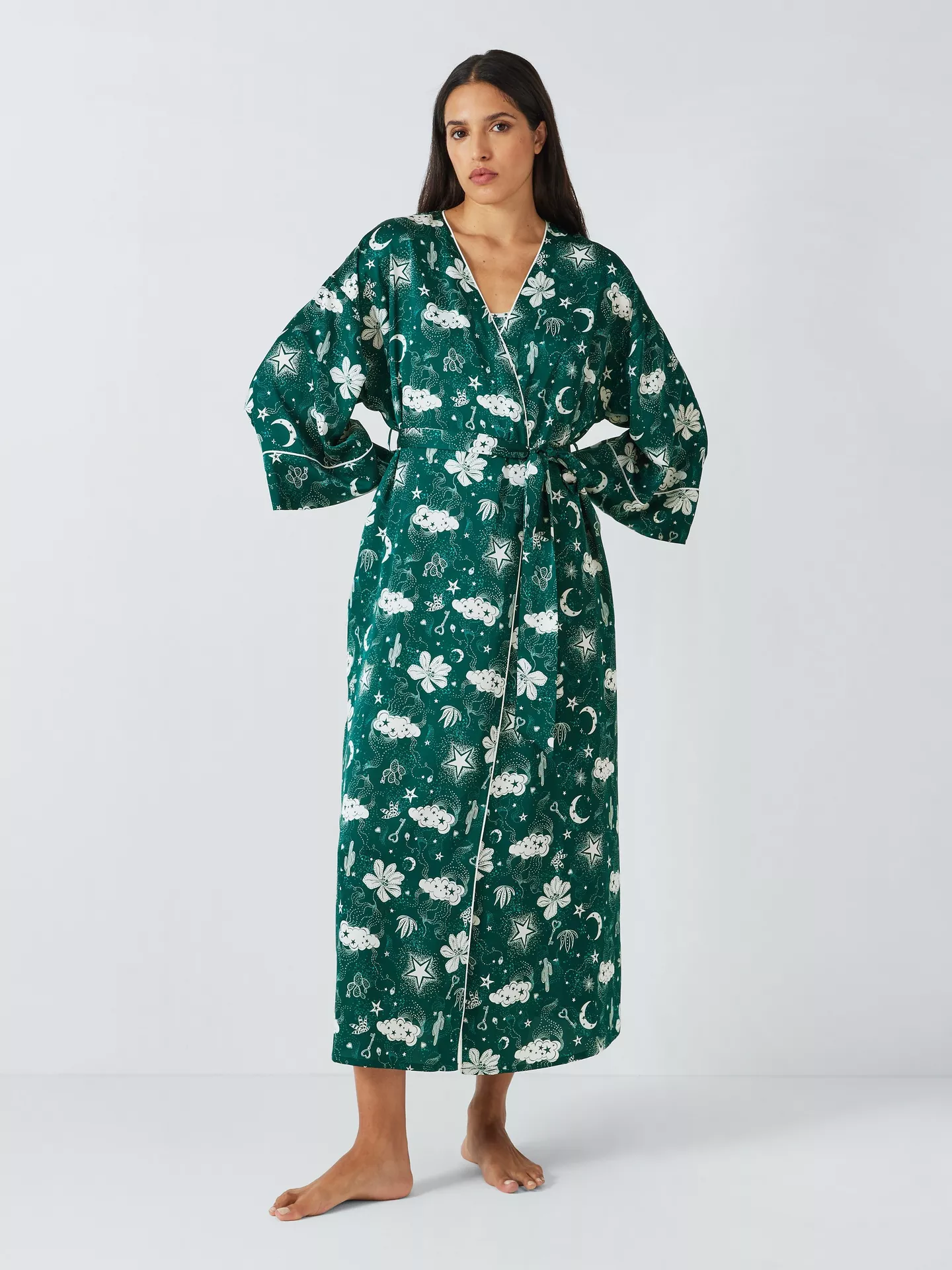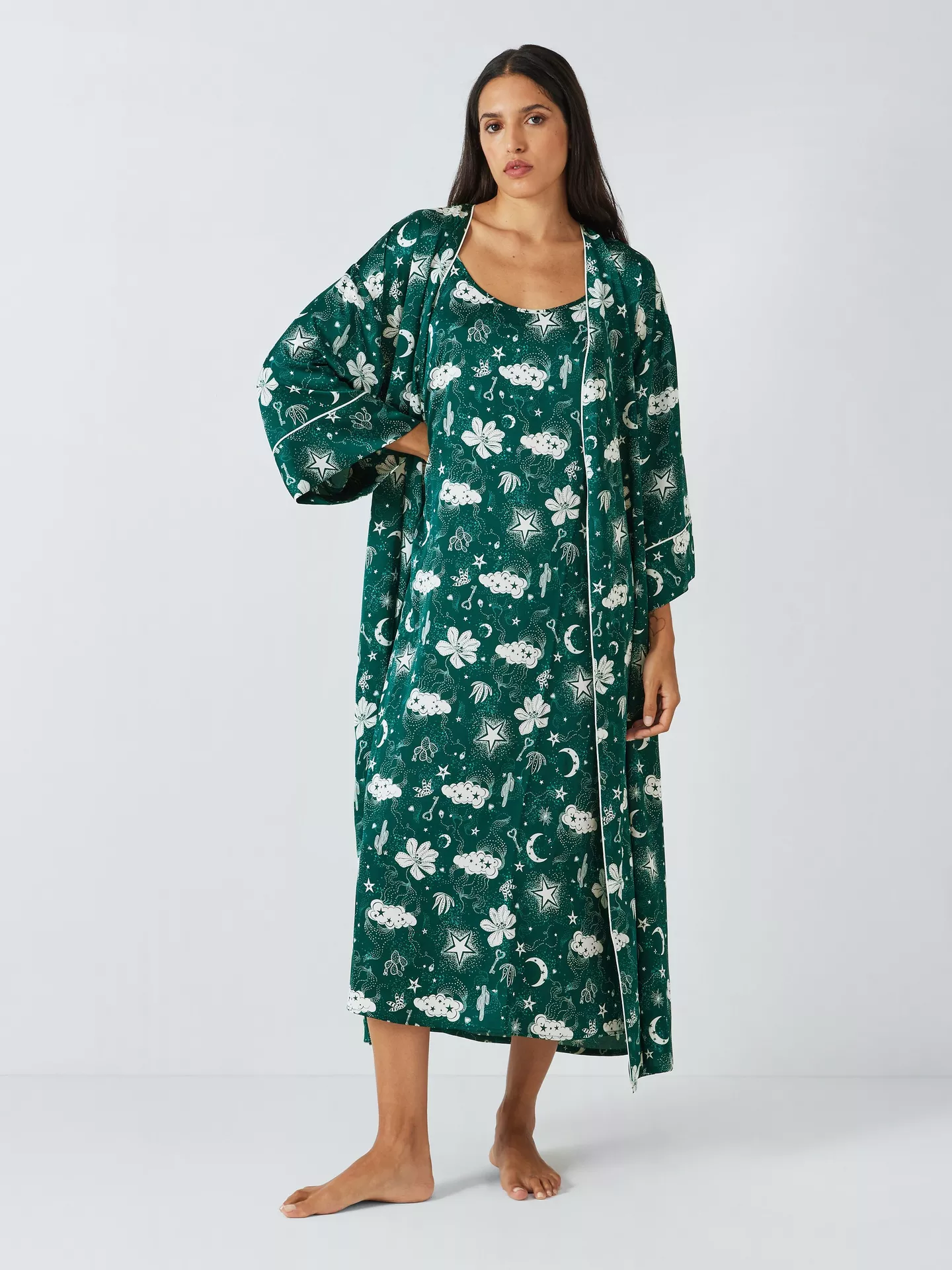 The Desert Dreamer Satin Dressing Gown offers a soft, lightweight feel with a polished finish. Made from smooth satin, it drapes gently over the body for relaxed comfort. The flowing design feels cool on the skin, making it ideal for mornings, evenings, or slow weekends. Elegant yet easy to wear, this gown adds a touch of luxury to everyday lounging.