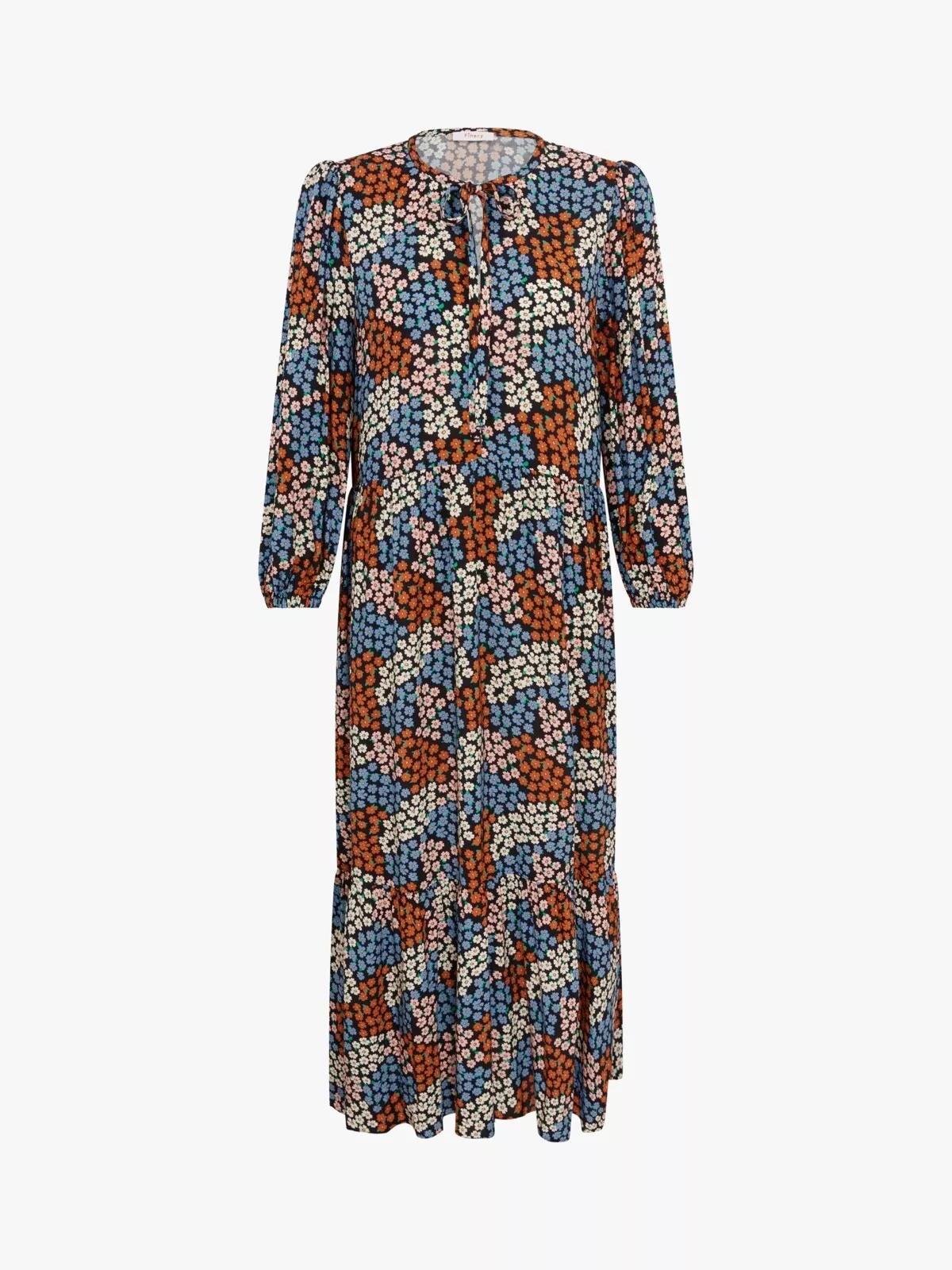 Softly romantic, the Eliora Fleurs Midi Dress is adorned with dainty floral patterns and a fluid silhouette?ideal for weekend getaways or casual evenings.