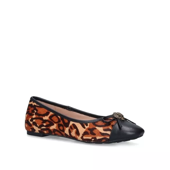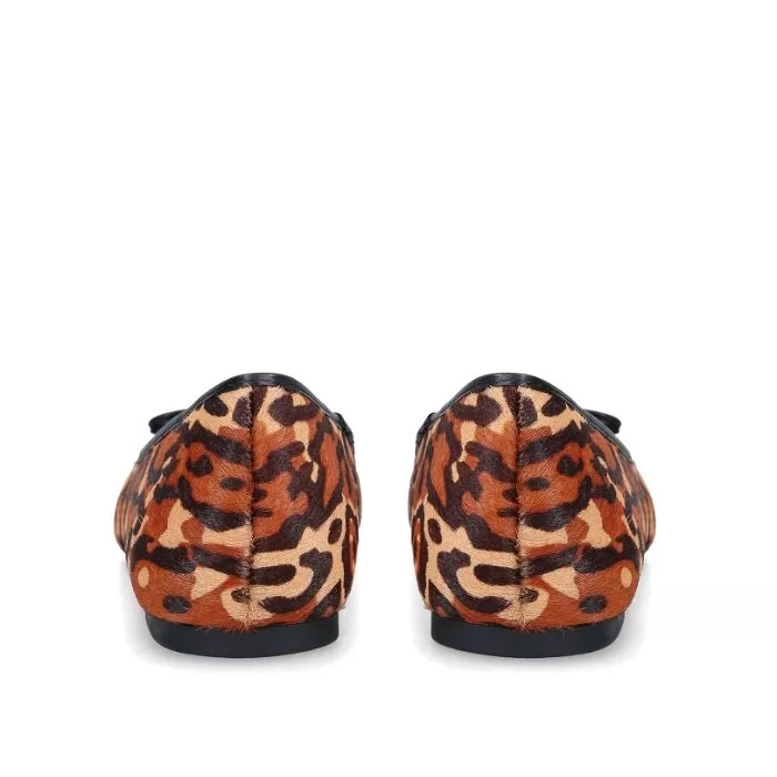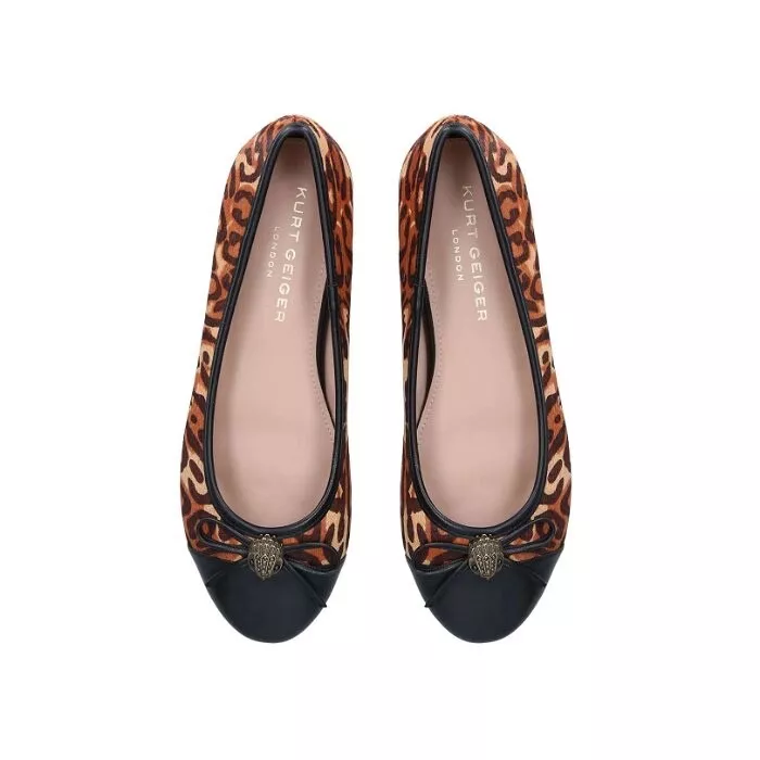 The Kurt Geiger London Esme Leopard Print Eagle Loafers in Brown blend classic style with bold flair. Featuring a striking brown and black leopard print, they make a fierce fashion statement.