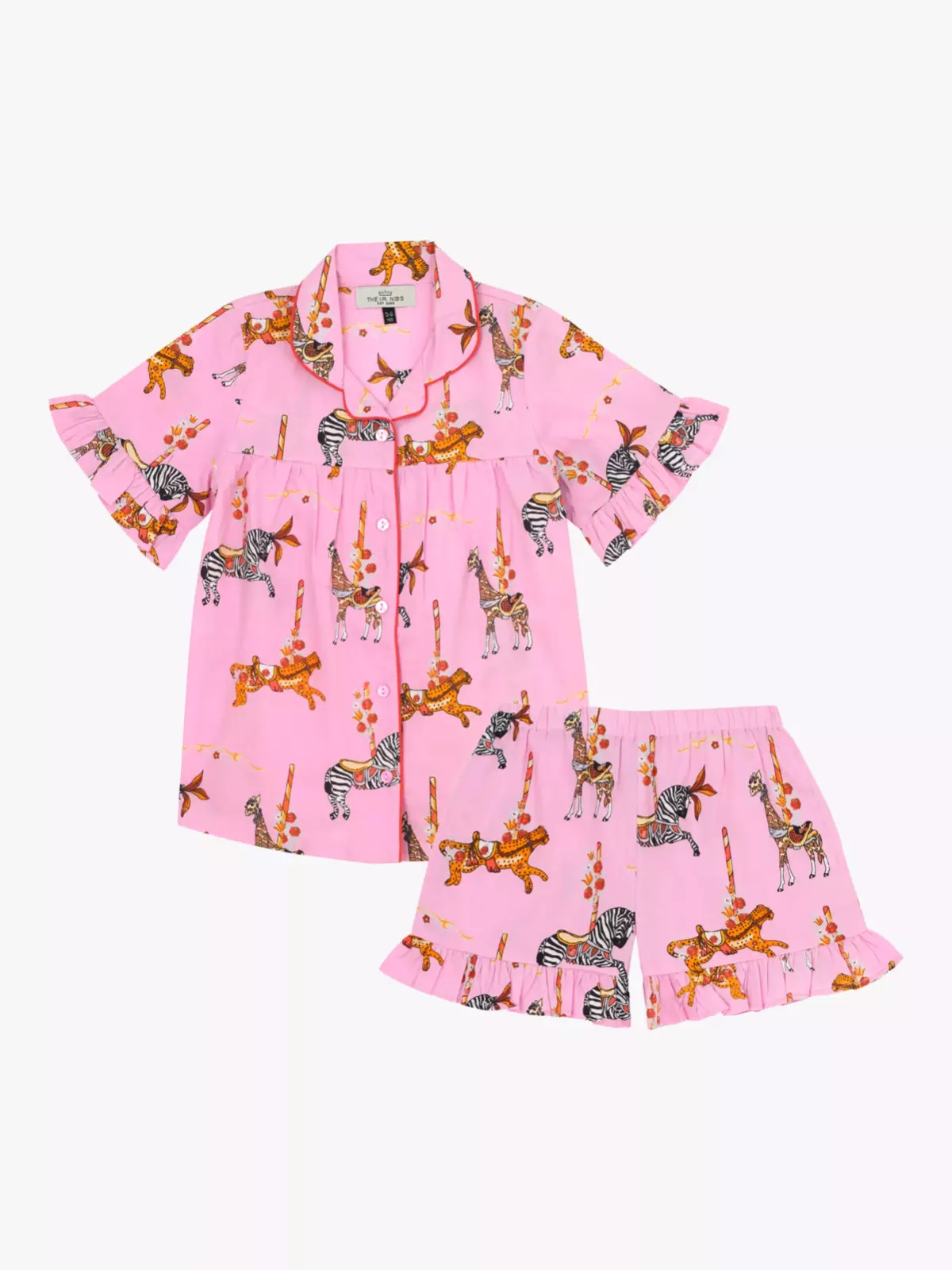 Playful and soft cotton pyjama set with a jungle-themed carousel print, perfect for young dreamers.