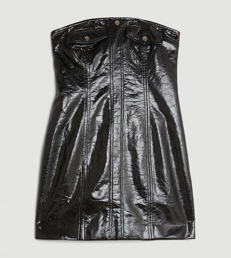 Metallic Faux Leather Front Pock Mini Dress