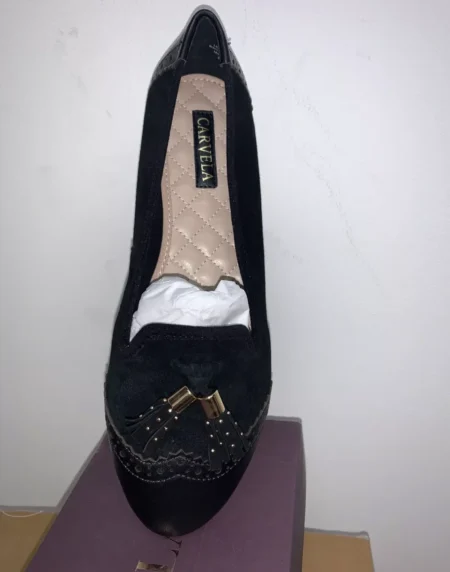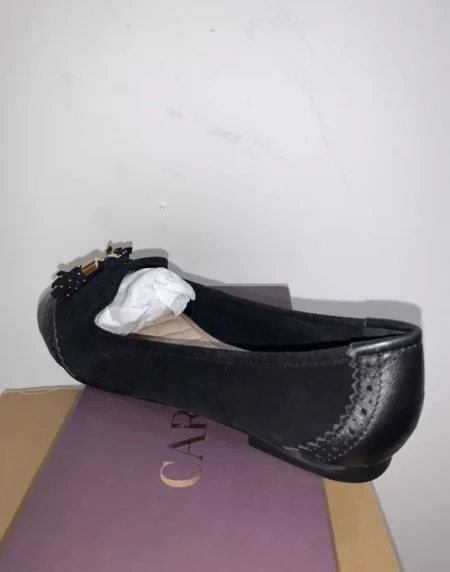 The Carvela Kurt Geiger Mouse Textured Ballet Pumps in Black offer a chic and comfortable footwear option. Featuring a textured black material, these ballet flats have a cute, feminine design with a small bow detail on the front. They are perfect for adding a touch of sophistication to casual or office outfits while providing all-day comfort.