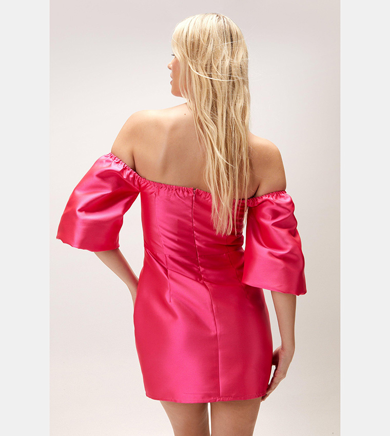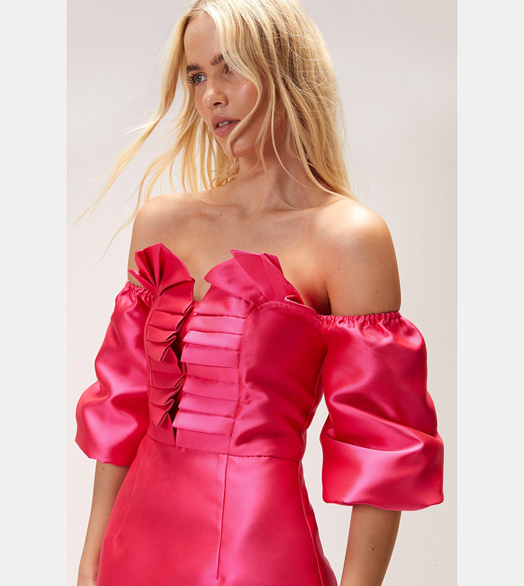 The Pleat Detail Bardot Structured Satin Dress in Pink combines style and elegance. Made from high-quality satin, it offers a flattering fit and comes in a variety of sizes. Perfect for special occasions or adding a glamorous touch to your wardrobe.