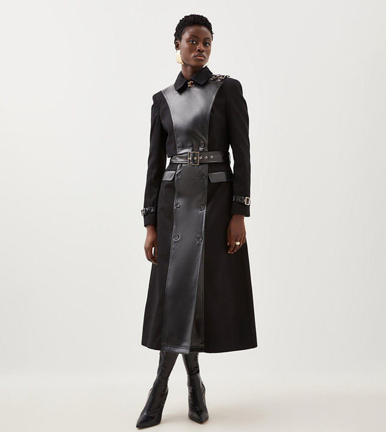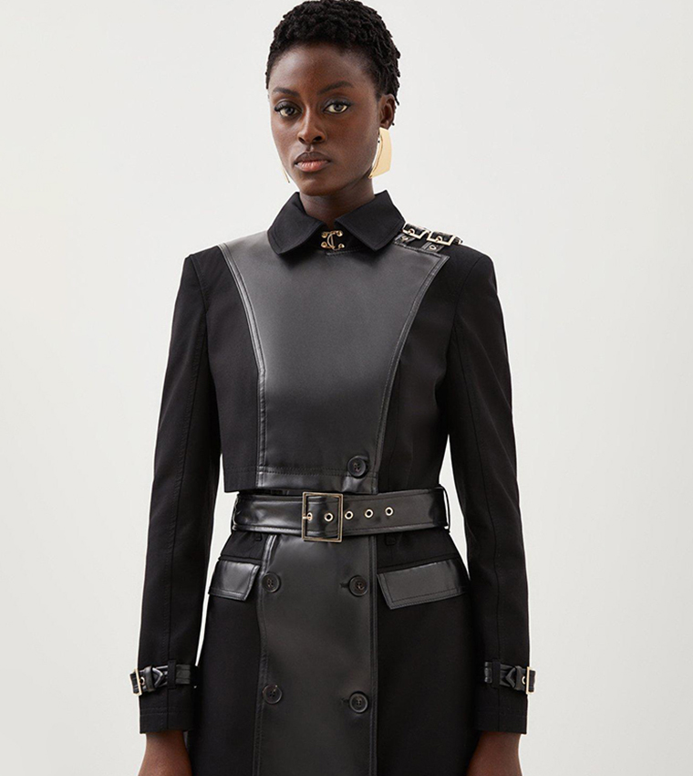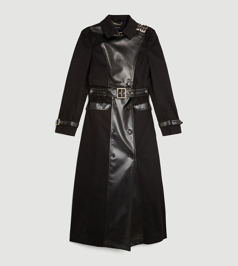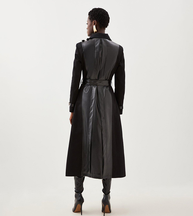 Stay effortlessly stylish with the Pu Detail Belted Cotton Maxi Trench Coat. Combining PU details and classic trench coat design, it’s a perfect blend of utility and style.