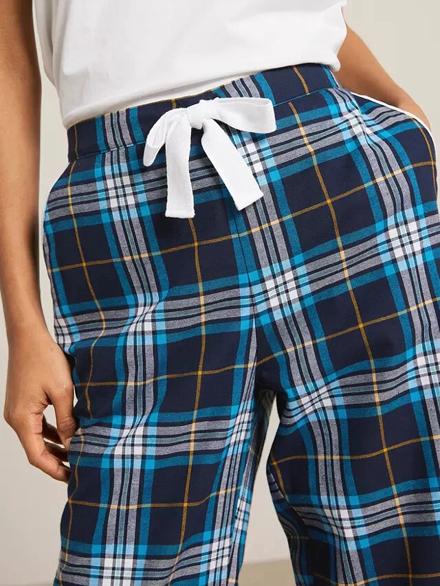 The Roberta Check Pyjama Bottoms offer soft comfort for cool nights. The brushed fabric feels warm and gentle on the skin. At the same time, the relaxed fit allows easy movement while you sleep or rest. As a result, they pair well with your favourite pyjama tops and work perfectly for both bedtime and cosy evenings at home.