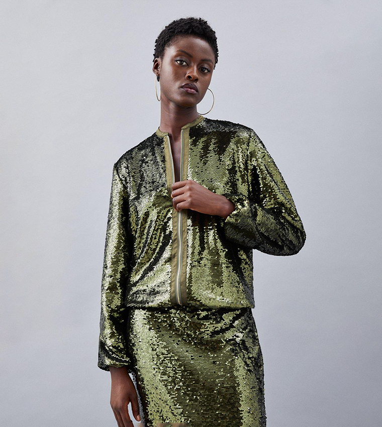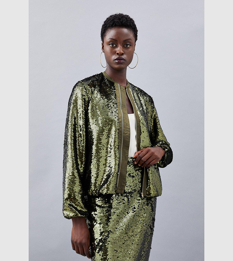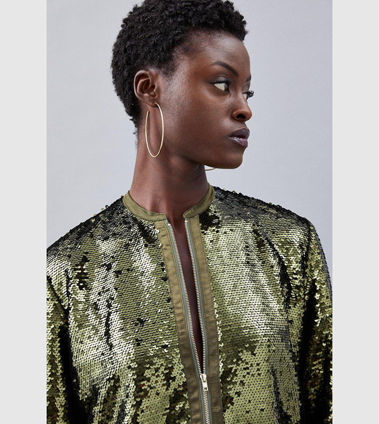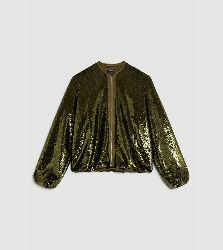 dd a touch of glamour to your casual wear with the Sequin Woven Bomber Jacket. This lightweight jacket features intricate sequin detailing, giving it a sparkly edge. Perfect for layering over casual outfits or enhancing evening looks, this bomber jacket is versatile and chic.