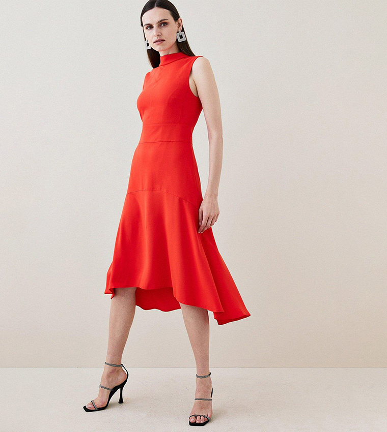 Step into modern sophistication with the Soft Tailored High Low Midi Dress. Designed with a flattering tailored fit and a high-low hemline, this versatile midi dress is perfect for office events, dinners, or special occasions. Its clean lines and structured silhouette exude timeless elegance.