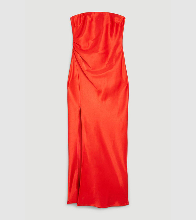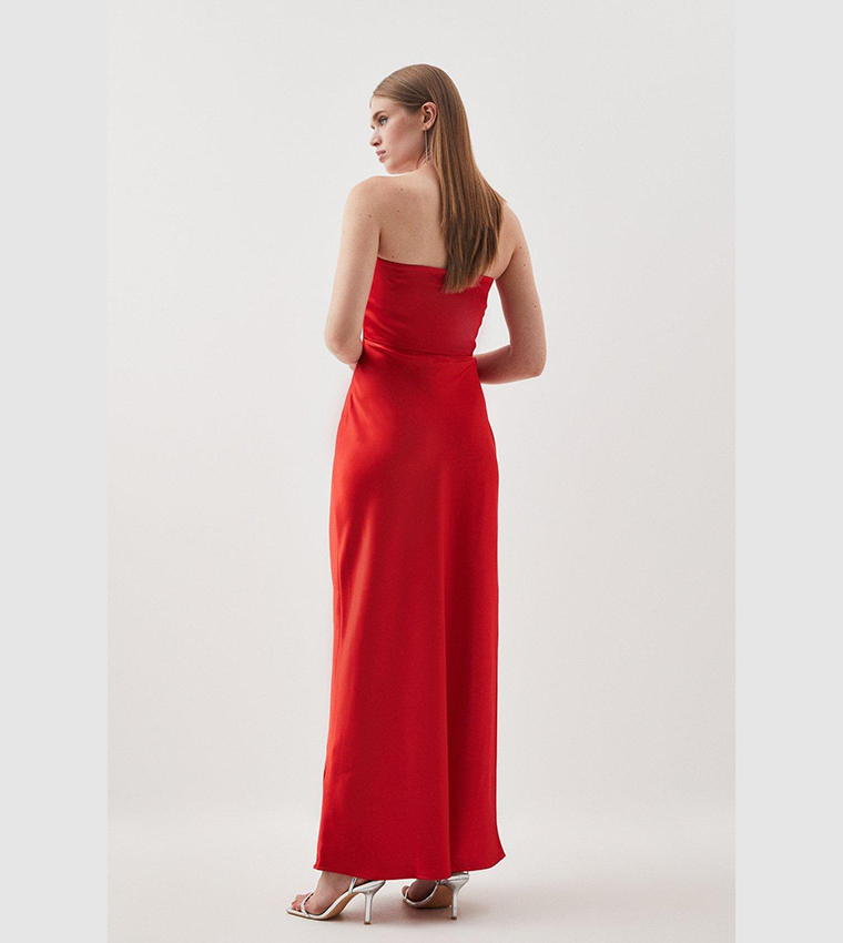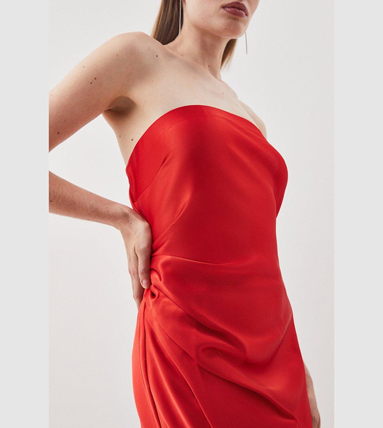 Indulge in luxury with the Strapless Premium Satin Panelled Woven Midi Dress, a stunning blend of modern design and sophisticated elegance. Made from premium satin, this dress offers a smooth, lustrous finish that glides over the body, exuding a refined, timeless appeal. The strapless design highlights the shoulders and neckline, creating a flattering silhouette, while the panelled construction adds structure and depth to the dress for a tailored, fashion-forward look.