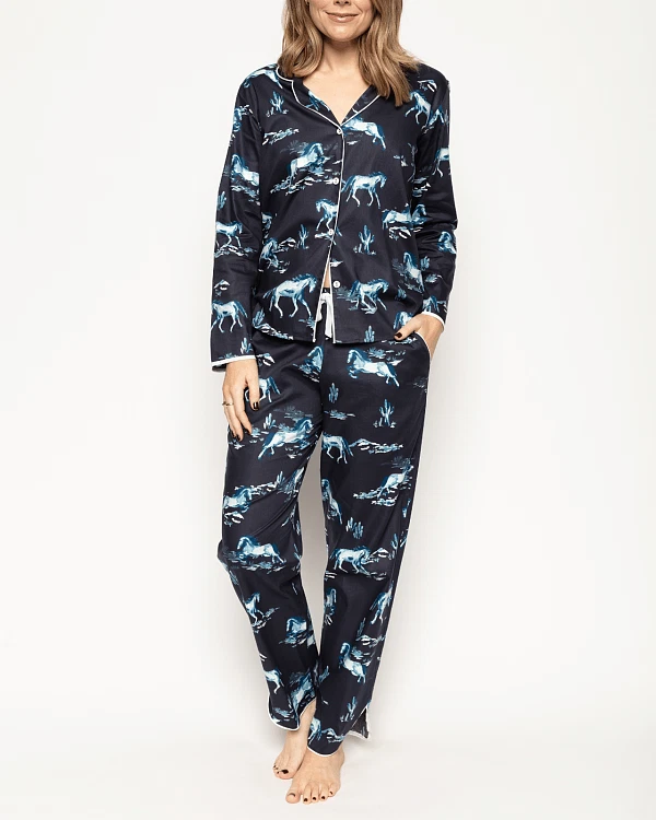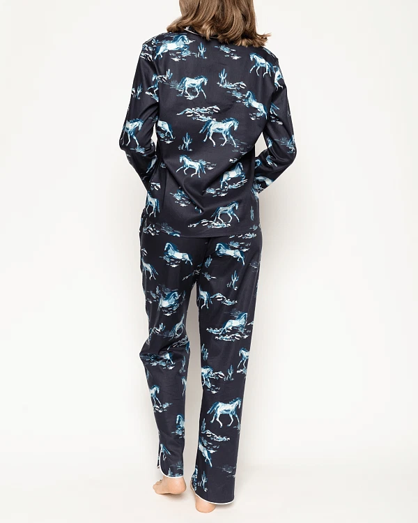 The Verity Horse Shirt Pyjama Set combines comfort with playful charm. It features a horse print shirt and matching bottoms. This breathable cotton pyjama set is perfect for relaxed nights and cosy mornings.