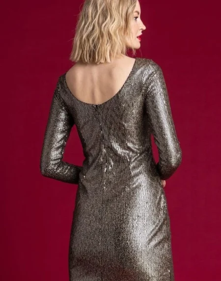 Eye-catching mini skirt with iridescent tile sequins for dazzling movement.