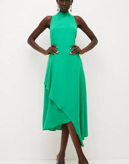 (0)Crepe Waterfall High Neck Midi Dress